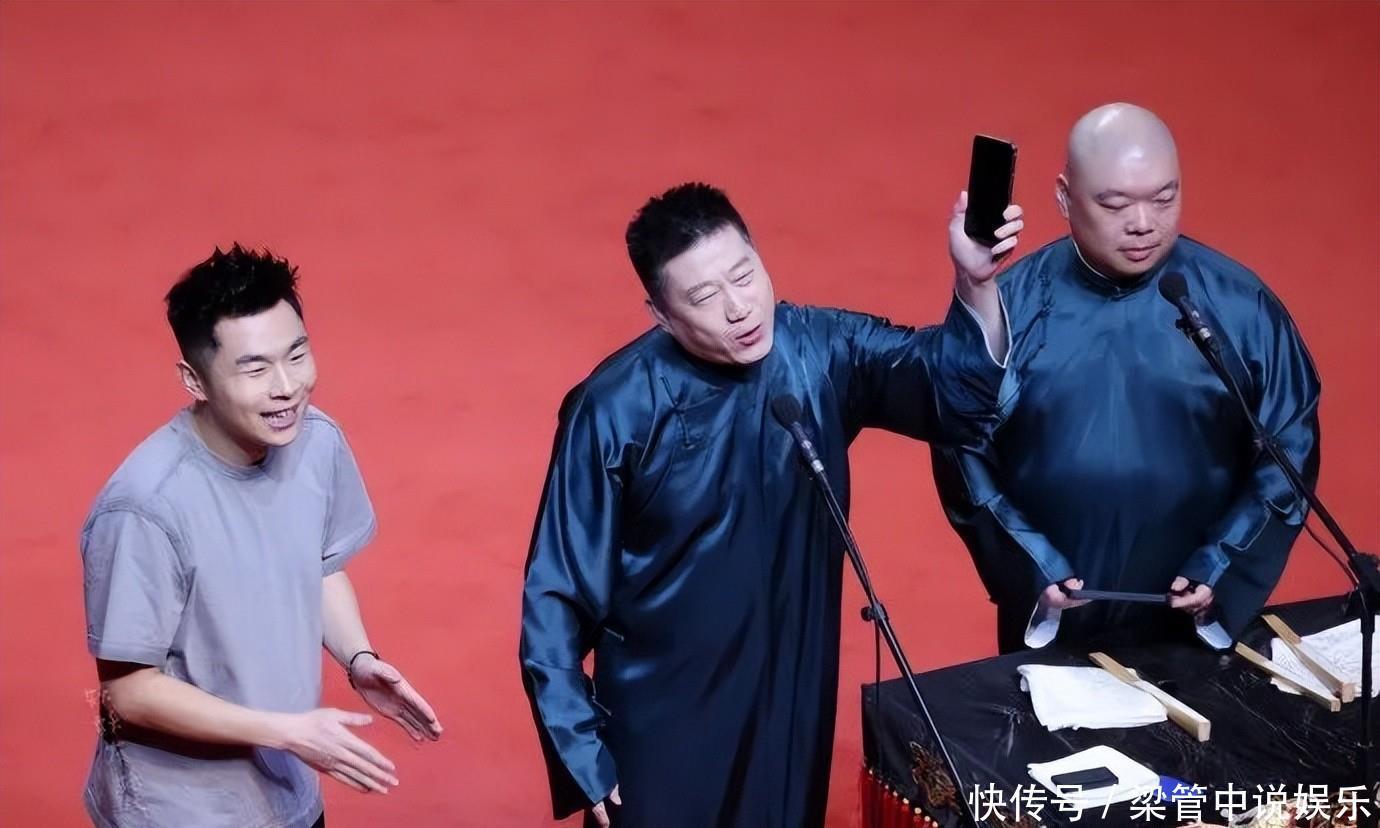 演员投入,观众尽兴,下场就忘了手机的事情。张九南、高九成在二场登台。后面张九龄、王九龙,孔云龙、章九徕依次表演完毕,也没能把手机给张九南顺下来。估计在台下没少求伦哥,张鹤伦、郎鹤炎登台不分钟,就把话题引到了手机上,张九南也就趁着伦哥询问的功夫,再次上台。无缘无故提手机,那是有违和感的,会破坏节目效果。在提手机之前,张鹤伦做了很好的铺垫。既然不能满足,也没有实力给观众退票,那就送大家一部手机。